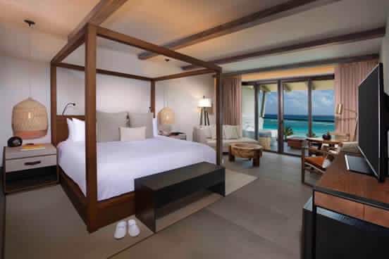 Ideado por Artigas y conceptualizado por el despacho de interiorismo Avroko, el hotel cuenta con un total de 448 habitaciones las cuales, en su mayoría, cuentan con vista al mar. Las alcobas del primer piso gozan de una piscina privada con camastros; mientras que del segundo al quinto nivel poseen tinas de hidromasaje en los balcones.